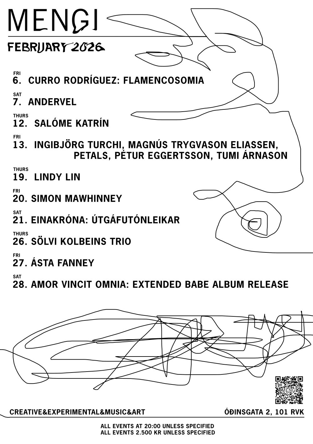 Since 2013 Mengi has hosted a carefully curated and diverse program of events all year round, focusing on creative and innovative music.
