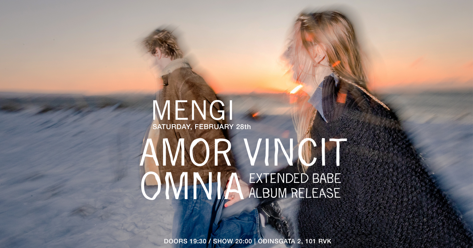 Tickets Saturday, February 28th AMOR VINCIT OMNIA: EXTENDED BABE ALBUM RELEASE doors 19:30 / show 20:00 2500kr / 2000kr students / pay what u can Amor Vincit Omnia invites all to their release concerts where the new EP extended babe will be premiered along with various instrumentalists. The EP has been in the making for a long time and we are super excited to share it with you in all its glory. Amor Vincit Omnia býður til útgáfutónleika þar sem nýja stuttskífa þeirra extended babe verður frumflutt ásamt hinum og þessum hljóðfæraleikurum. Platan hefur verið í vinnslu í þó nokkurn tíma og erum við spennt að deila henni með ykkur í heild sinni. ------ Amor Vincit Omnia is a pop-project born in 2023. Amor’s music is best described as playful and eccentric. They are inspired by people who push the boundaries of pop music, and their sounds are inspired by everything between Skrillex and Steve Reich. In 2024, Amor released their debut EP, brb babe, earning them Reykjavik Grapevine’s ‘One to Watch’ and the Kraumur Awards. In February they are releasing their second EP, extended babe, a heartfelt collection of songs made for the sole purpose of making people feel worse about their love life. Amor Vincit Omnia er popp hljómsveit skipuð af þeim Erlu Hlín og Baldri. Tónlistinni þeirra má lýsa sem leikandi og spennandi og dregur innblástur frá framsæknu tónlistarfólki, allt á milli Skrillex og Steve Reich. Fyrsta stuttskífa Amor kom út 2024 og fyrir hana fengu þau kraumsverðlaun og unnu í þokkabót titilinn ‘One to Watch’ hjá Reykjavik Grapevine. Í febrúar ætla þau að gefa út splunkunýja stuttskífu, extended babe, en það er samansafn af lögum sem gerð eru til að láta fólki líða verr og drukkna í harmi ástarinnar.