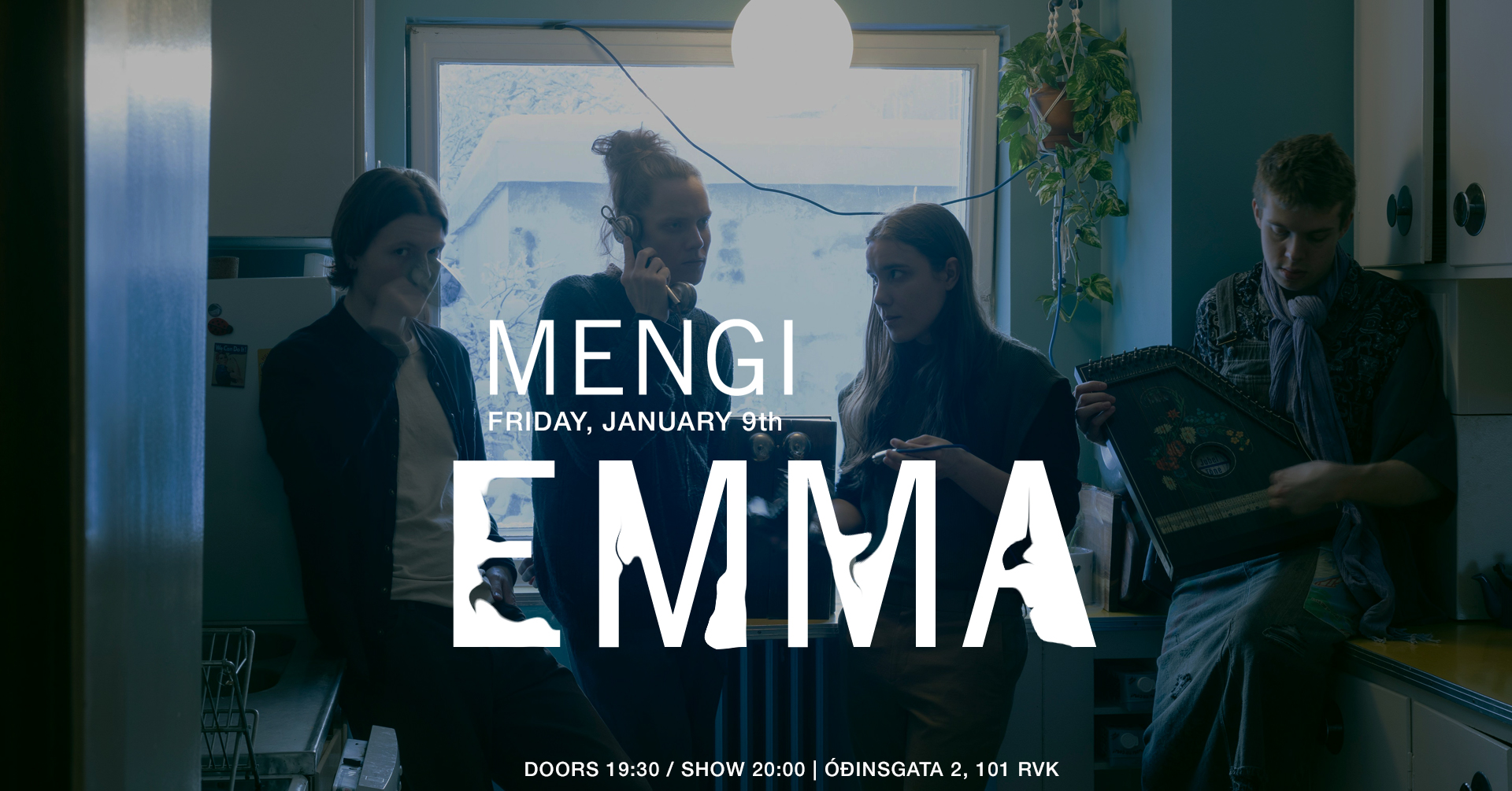 Tickets Friday, January 9th EMMA doors 19:30 / show 20:00 2500kr / 2000kr students / pay what u can Come enjoy a cozy and intimate evening of music with atmospheric folk band Emma. They will be playing stripped back versions of songs from their 2025 debut Halidome, and maybe some new stuff sprinkled in to start 2026 off right!