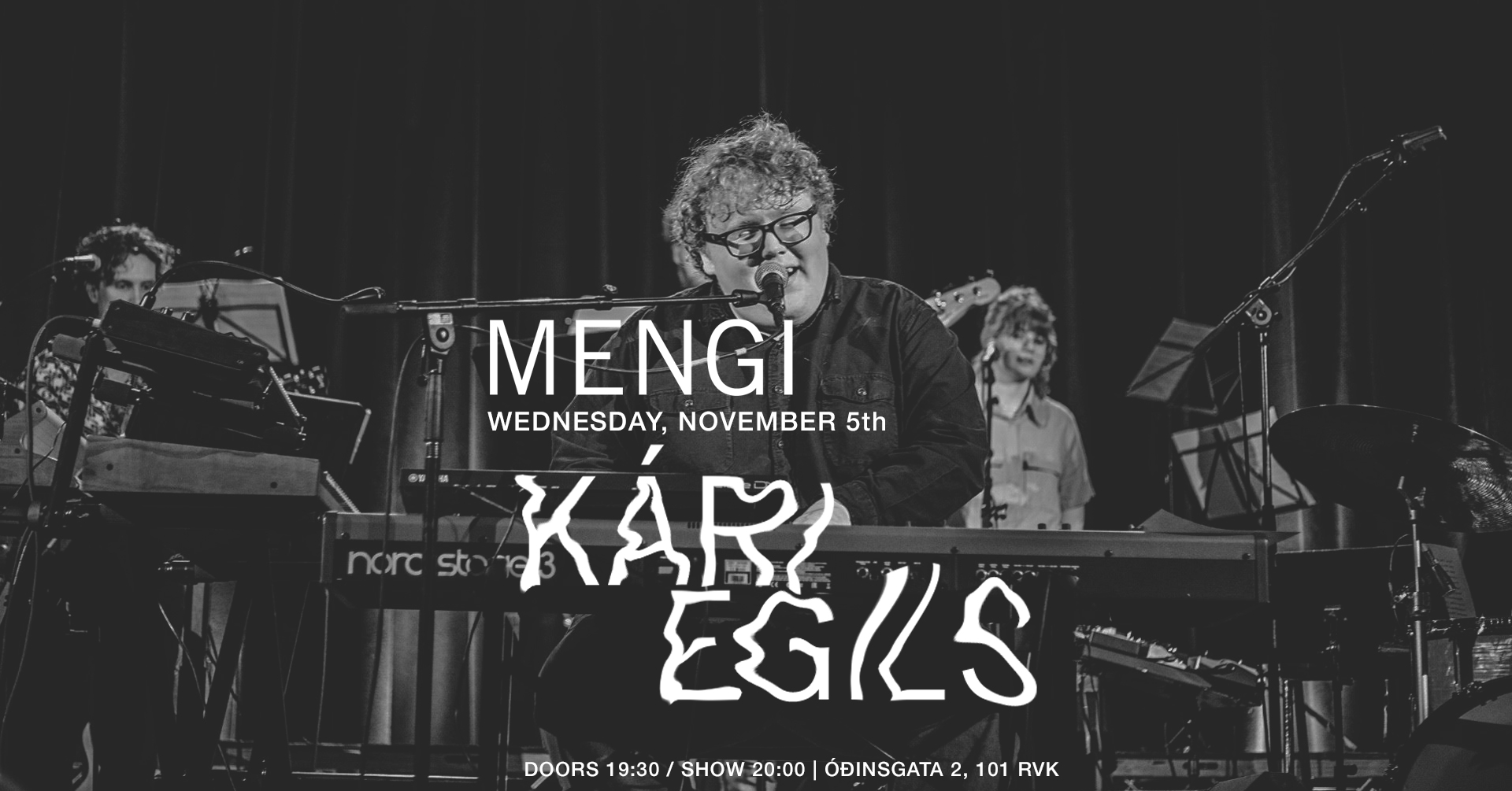 Tickets MY STATIC WORLD VÍNYLÚTGÁFA doors 17:30 / show 18:00 pay what u can - 2500kr suggested Haldið verður uppá vínylútgáfu My Static World, plötu Kára Egils, á vínyl í Mengi miðvikudaginn 6. nóv kl. 18. Kári og hljómsveit taka nokkur vel valin lög og hægt verður að kaupa vínyl og fá hann áritaðan ef áhugi er á því. https://kariegils.lnk.to/mystaticworld Kári Egils is a talented young singer/songwriter and pianist from Iceland. In March 2024 he received the “Brightest hope” award from the president of Iceland. The award is given to the young musician in any genre that is considered the most promising of the year by the jury. Kári first made waves with his critically acclaimed debut album, Palm Trees In The Snow, which offered a fresh take on 70s influences and newer pop and indie. With his highly anticipated follow-up album, My Static World, released in March 2025, Kári expands his sonic palette, incorporating more modern sounds and production techniques, while retaining the melodic and thoughtful songwriting that made his debut stand out. Kári’s artistic growth is especially noticeable on standout tracks like Carry You Home, In The Morning, and Midnight Sky. Kári’s musical talent became obvious when he started studying the piano at seven years old. He started in classical music, and branched out to jazz piano and improvisation by the age of ten. Early on, he began writing his own music and developed an interest in pop music, showing an uncanny sense of melody.