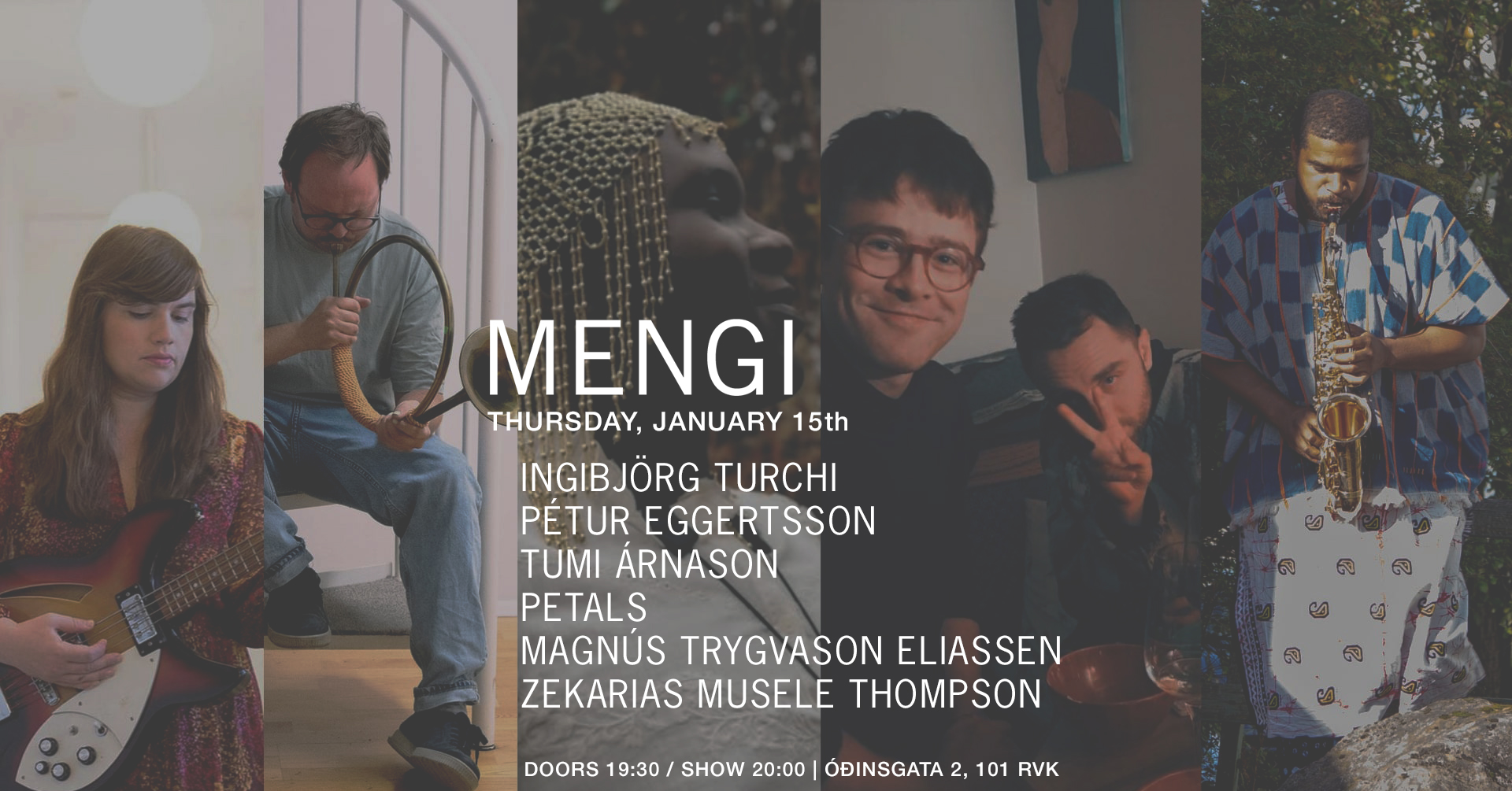 Tickets Thursday, January 15th INGIBJÖRG TURCHI/PETÚR EGGERTSSON/TUMI ÁRNASON/PETALS/MAGNÚS TRYGVASON ELIASSEN/ZEKARIAS MUSELE THOMPSON doors 19:30 / show 20:00 2500kr / pay what u can Welcome to an evening of improvised music featuring Ingibjörg Turchi, Magnús Trygvason Eliassen, petals, Pétur Eggertsson, Tumi Árnason & Zekarias Musele Thompson. „... consider each performer as a complete unit with each having his or her own center from which each performs independently of any other, and with this respect of autonomy the independent center of the improvisation is continuously changing depending upon the force created by individual centers at any instance from any of the units.“